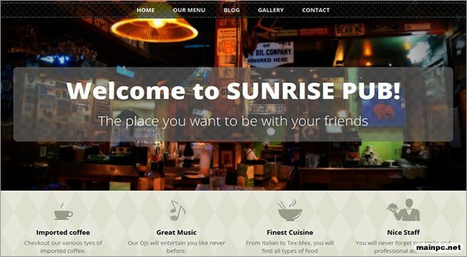 WordPress Restorant – Bar Teması – Sunrise Theme