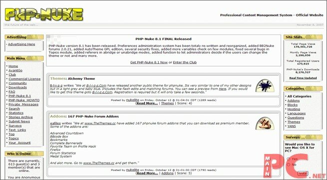 PHP-Nuke, David Norman tarafından yazılıp Francisco Burzi tarafından geliştirilen, PHPNukeTurkiye.Org tarafından Türkçeye çevrilmiş web tabanlı bir içerik yönetim sistemidir. Çalışması için sunucuda PHP ve MySQL desteği bulunması gerekir. Sistem tamamen web tabanlı bir... Devamı »